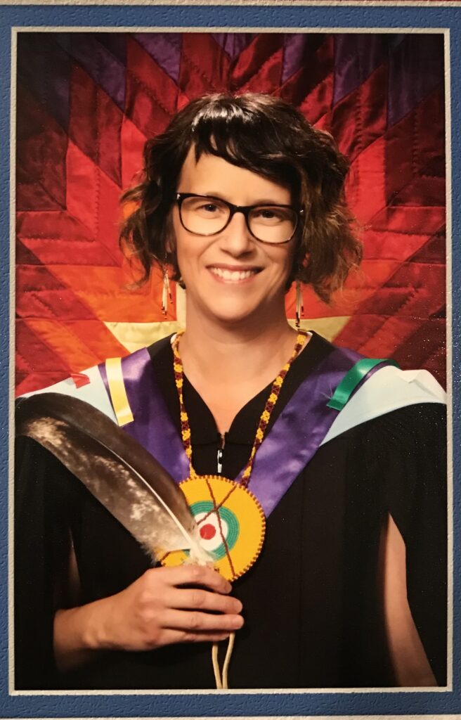 “As a non-Indigenous educator, being invited into the Masters of Indigenous Education program at First Nations University, was an honour and a gift. The learnings that were shared assist me in navigating the complex realities of building relationships towards reconciliation in meaningful and authentic ways. The responsibility I have as an educator in uplifting and opening relational space for First Nations ways of knowing and being to be honoured, respected and embodied along this journey is essential. I am grateful for the continued relationships and experiences this program opened up. I carry them with me as I move forward and work towards change within the educational system. Thank you to my instructors Dr. Angelina Weenie, Elder Willie Ermine and Dr. Kathleen O’Reilly for creating such a welcoming, engaging and inspiring space that pushed us beyond our knowing into newness.-nanâskomowin.“