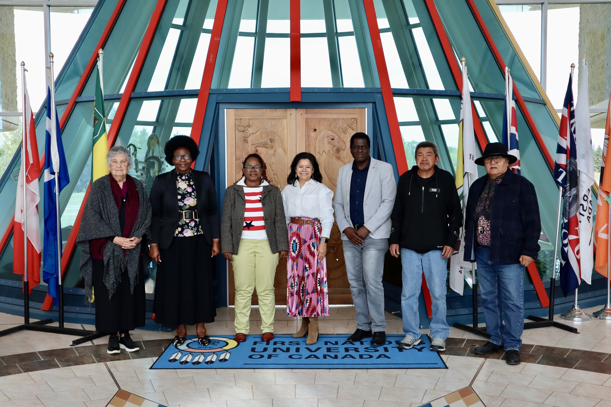 The University of Zululand delegation, travelling from South Africa to First Nations University of Canada’s Regina, Saskatchewan campus, included Professor X Mtose, Vice Chancellor and Principal, Professor KC Lehloenya, Dean, Faculty of Sciences, Agriculture and Engineering, Professor J Mashiya, Director of International Office, and Professor I Moyo, Deputy Dean, Research and Innovation, Faculty of Science, Agriculture and Engineering. The visit included a morning pipe ceremony with Elder Dennis Omeasoo, tour of the Regina campus, faculty presentations, and a visit to the McKenzie Art Gallery.