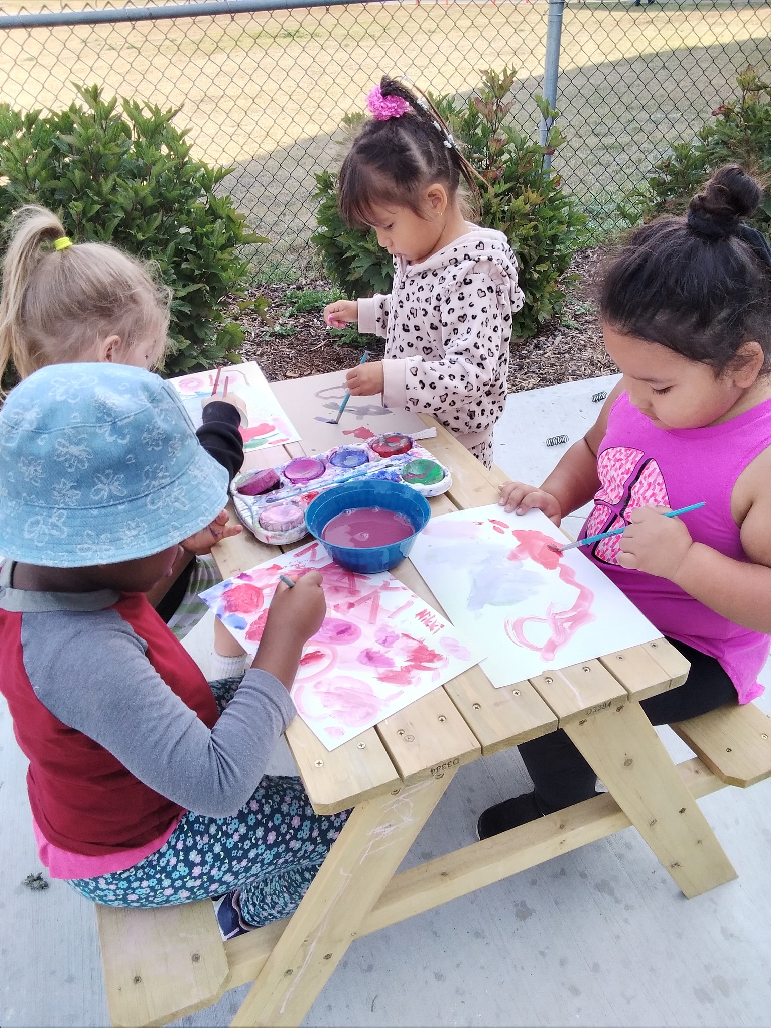 Just as our ancestors created in nature, we take art outside whenever we can. Painting under the open sky, children experience art the way it was meant to be—connected to the earth, the weather, and the natural world around them. The outdoor classroom offers endless inspiration: the colours of the sky, the textures of bark and leaves, the feeling of wind while they paint. This connection to place deepens their artistic experience and honours traditional ways of learning.